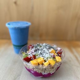 Cool spot for açaí bowls! I got the little bear and it was a good ratio of base to toppings. I added chia pudding to it and that elevated it even more. The green smoothie was also really good. They were super quick to make our order and very friendly when asking about the menu. Can't wait to come back to try more! There's some indoor seating available. Overall it's a small spot.