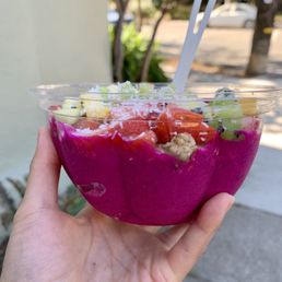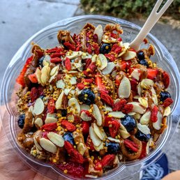 Got the Tamalpais with Strawberry instead of Kiwi, Two Notes: - You can only sub toppings in the same price range - Parking is nasty here, there is parking infront of the library sometimes. The flavor of the base was great! They were able to make it more icy for me by adding less cashew milk. The strawberries were very tart with the blueberries but the honey and bee pollen. Overall it was okay for $18 with tip and tax. Good for a quick Acai fix but definitely other options available too!