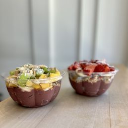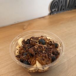 I got the gatherer. The bases are made to order so they can modify - I got no banana. I find the acai to be on the watery side compared to more traditional Brazilian acai places - probably due to the cashew milk. Priced pretty comparably to other açai places maybe slightly cheaper. I like that they piled on the toppings. Plenty of seats and some outlets. Paid street parking. It was very hot inside so not sure they have AC